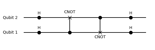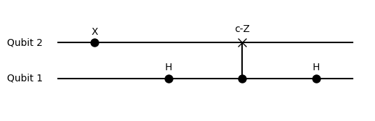 ops = [Op("H", 1), Op("CNOT", 1, 2), Op("CNOT", 2, 3)]
