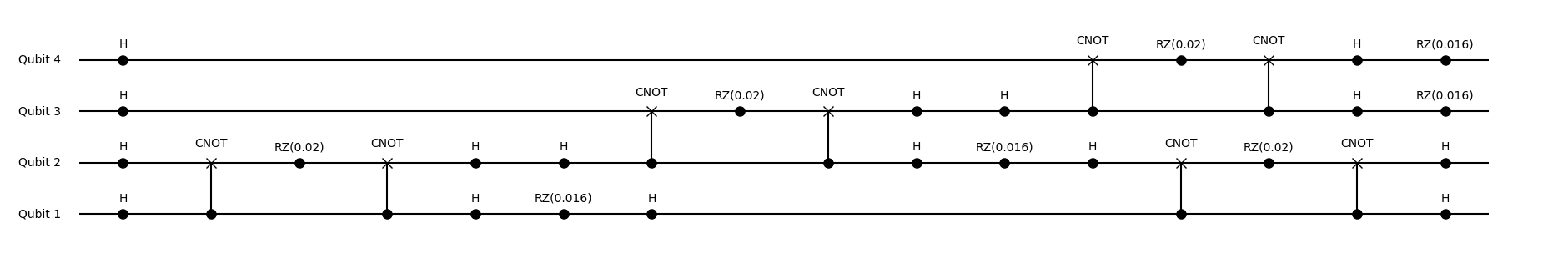 function, which takes the number of qubits, total simulation time, and the Hamiltonian expressed as a string of operations. It returns a sequence of Trotterized quantum operations.