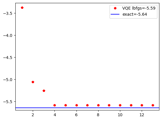 en, pars = VQE(ansatz) # Running the VQE algorithm